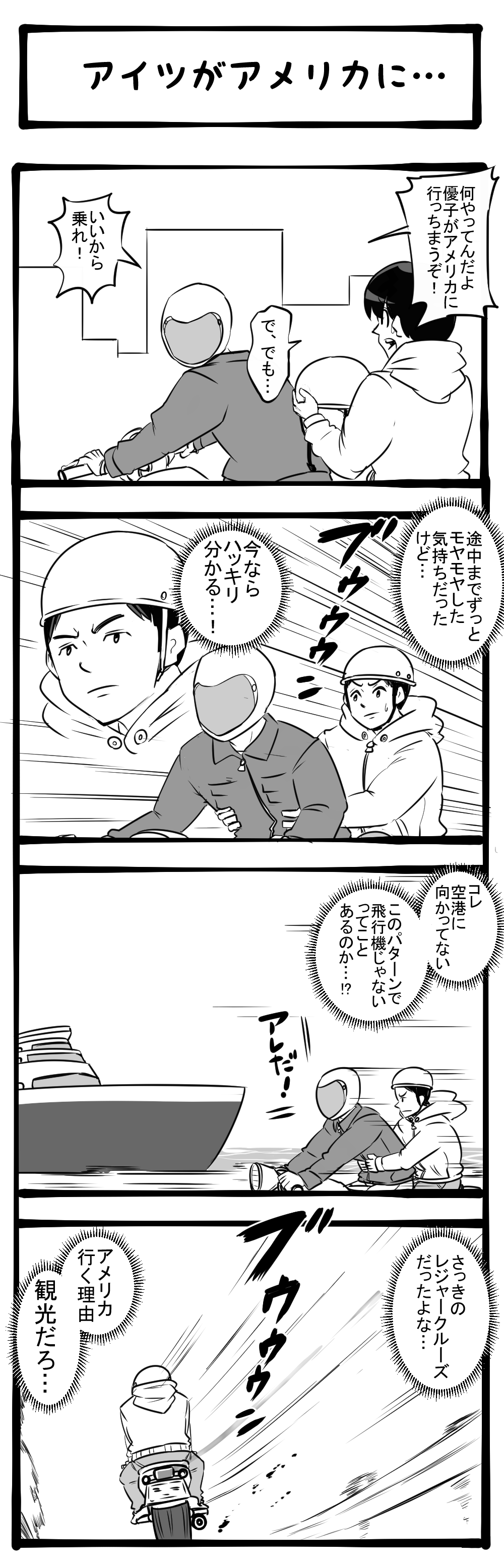 別に今行く必要ない! 気になるあの子が旅立つ日! 四コマサボタージュBYD第104回「アイツがアメリカに…」