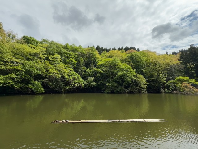 筆者は龍神堂のあるメインスポットを外れ、手前の遊歩道に戻ってきた。途中にも人面魚出現スポットが2つほどあり、エサをあげられる張り出し台もあったりする。