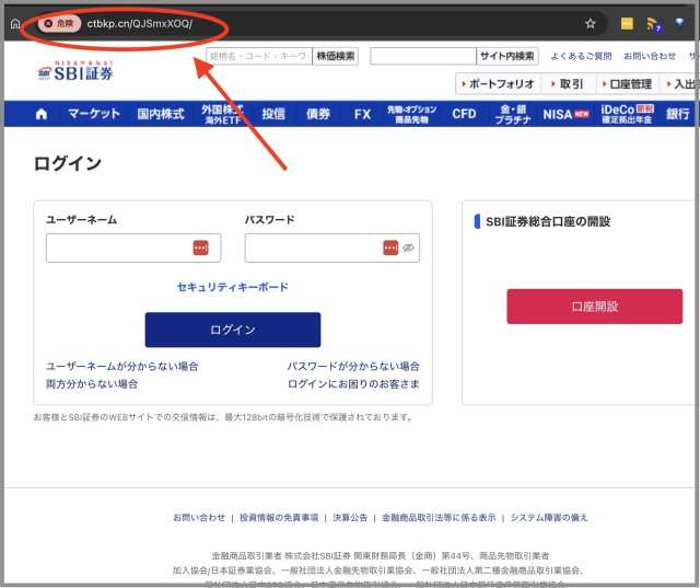 そして自動的に、本物のSBI証券のホームページに飛ばされた。