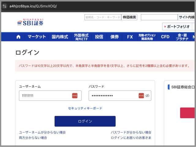 個人情報を抜き取るフィッシングサイトは、ログインフォームのみというシンプルな詐欺だが、逆にこういう方が危険だったりする。ネット証券ということもあり、投資家の皆さんには特に注意してもらいたい。