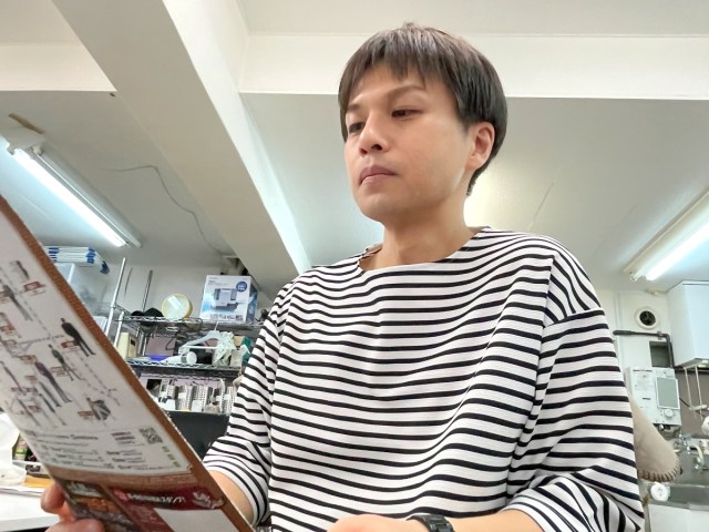 スタンプの台紙を手渡すと、満足げな表情を浮かべながらページをめくるサンジュン。