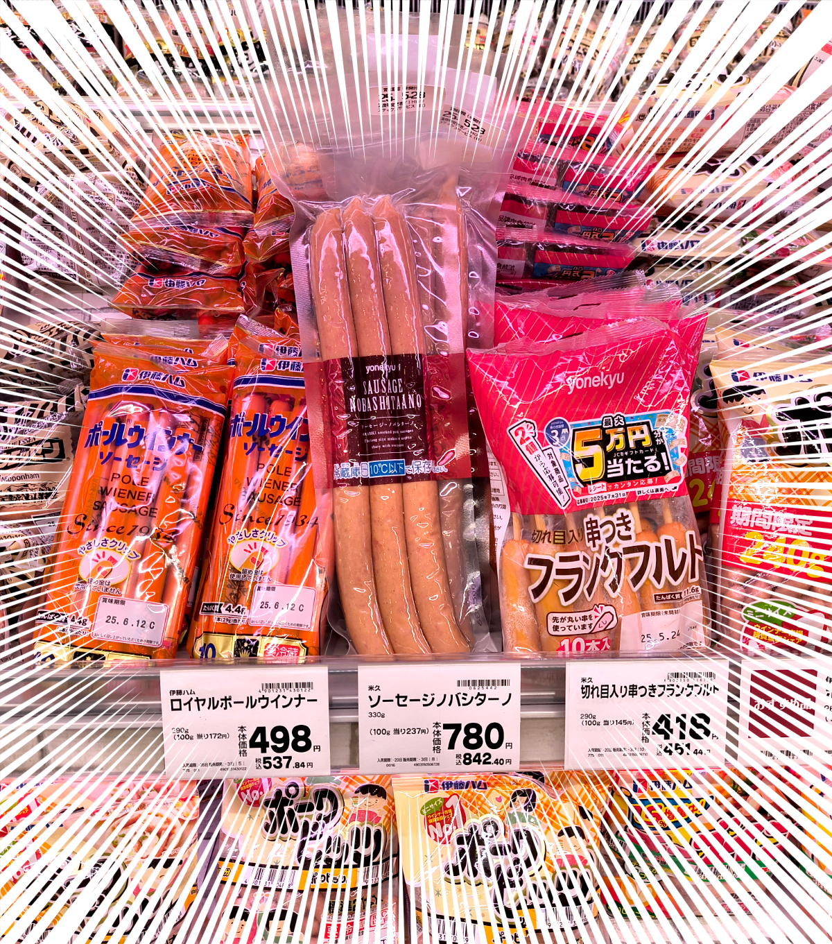 さらに販売元の米久(yonekyu)のサイトで知った新商品「ソーセージ・ノバシターノ」も都内で買えるというのである。その情報を元に練馬区のライフ平和台店に行ってみたところ……、あった! マジであったぞ、ノバシターノ!! これの美味しい食べ方をご紹介したい。長さを生かした食べ方はコレだ!