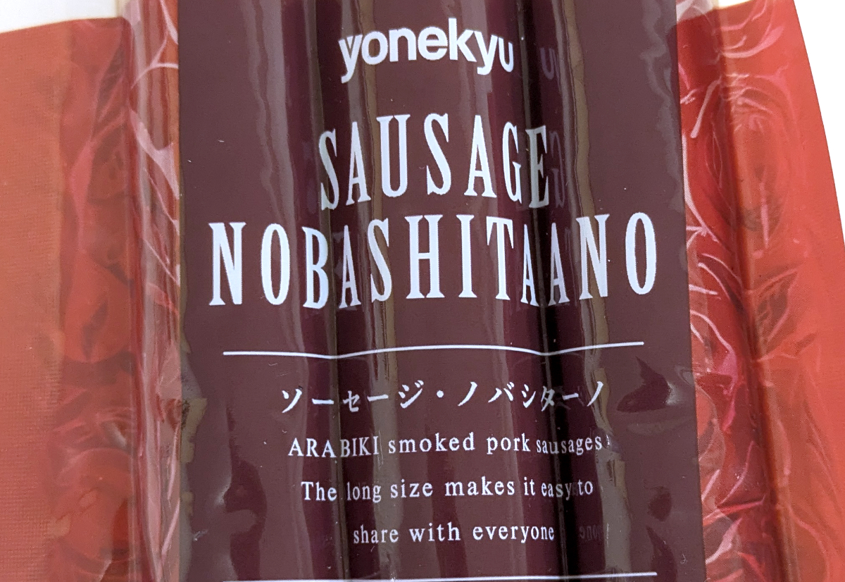 参考までに英語表記は「SAUSAGE NOBASHITAANO」である。マルメターノの同様に「ー(長音)」は「タ“ア”ノ」と解釈して、「TA“A”NO」になっているんだな。