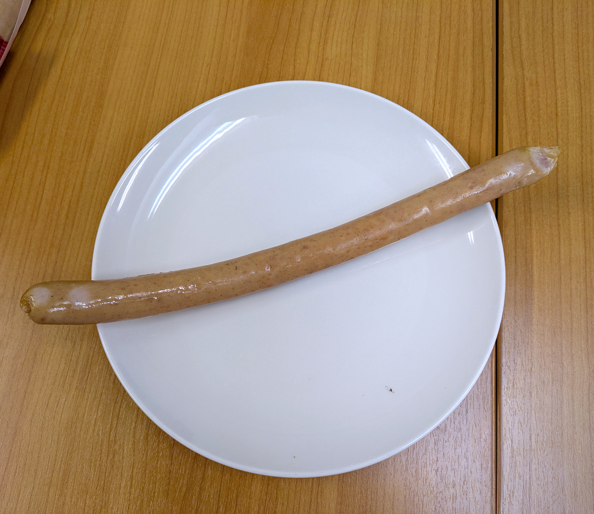 そういえば、長さを測っていなかったな。計測アプリで確認すると約28センチ。ひょっとすると、私がこれまでに遭遇したソーセージの中でも1番長いかもしれない。