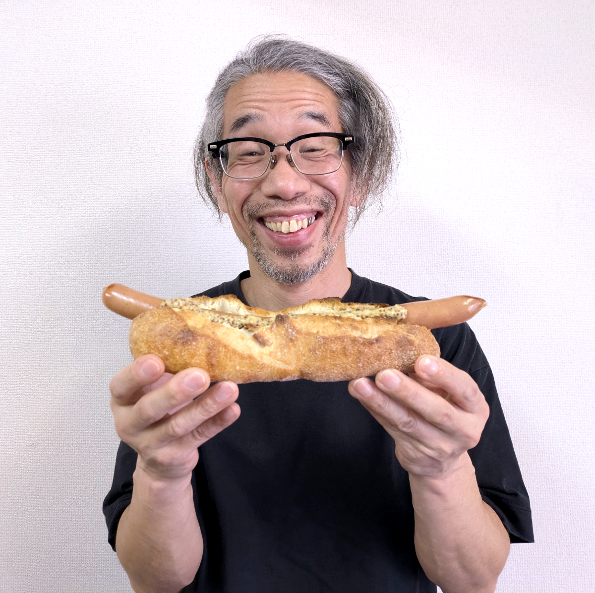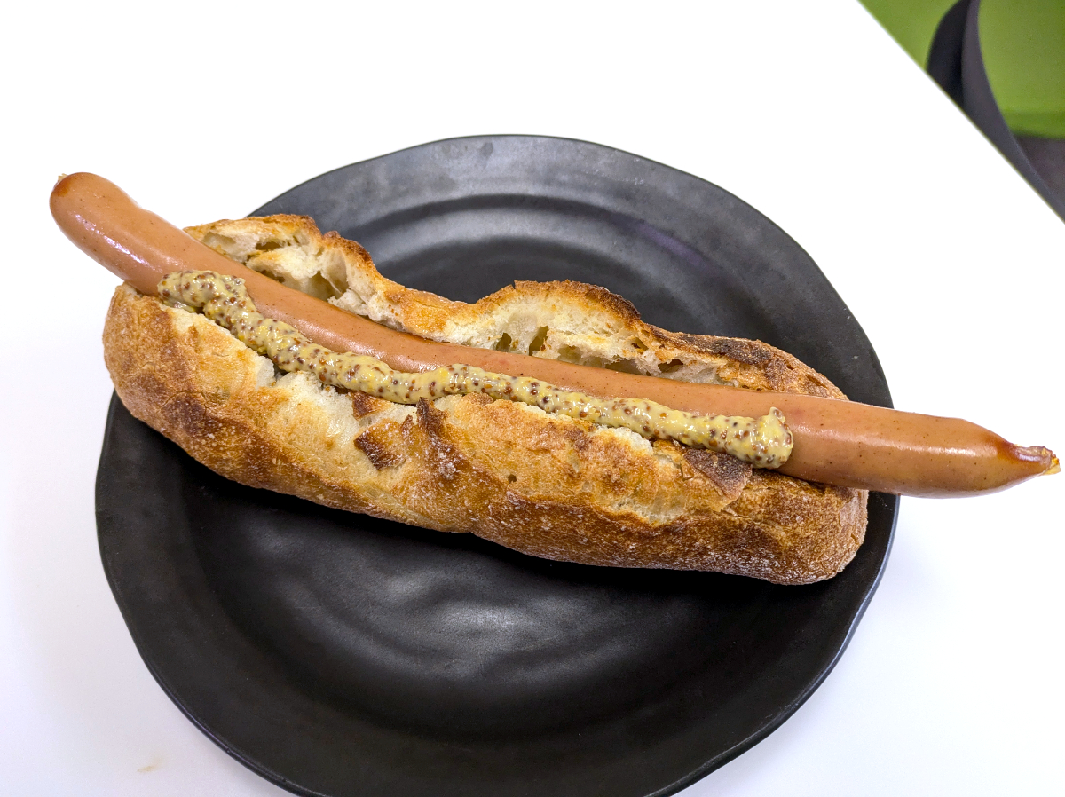 硬めのバゲットに挟んで、巨大ホットドッグにしてやりました!