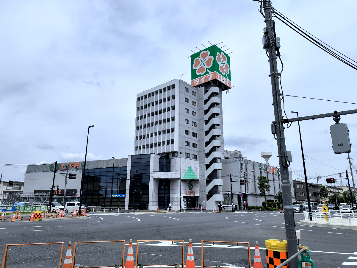 交差点の向こうを見るとライフがある。デカいな! こりゃ期待できるぞ。