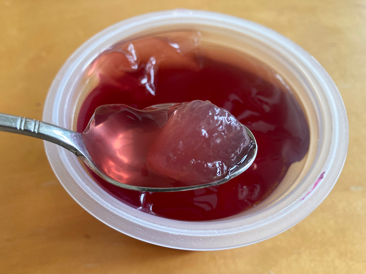そこで「まとめ買い値引き対象商品だった」というだけの理由で手に取った このぶどうゼリー。四角いパックの寒天ゼリーじゃなくて、カップタイプのほうである。