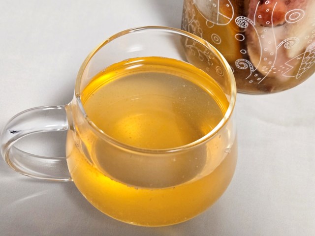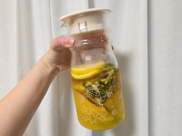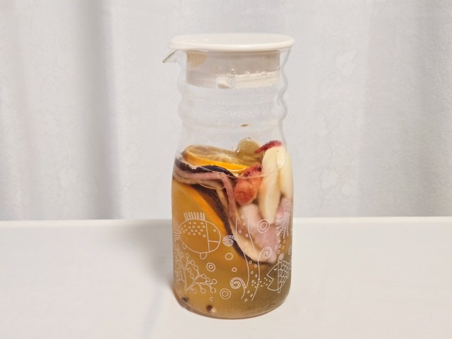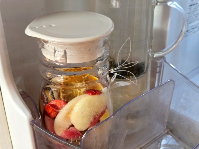 水の量やフルーツを漬ける時間によって、味は調整できるみたい。今回は600mlで3時間くらい置いておいたが、どちらの種類もかなりしっかりめに抽出された。もっとスッキリ飲みたい人は水の量を増やしたり漬ける時間を短くしたりすると良いだろう。