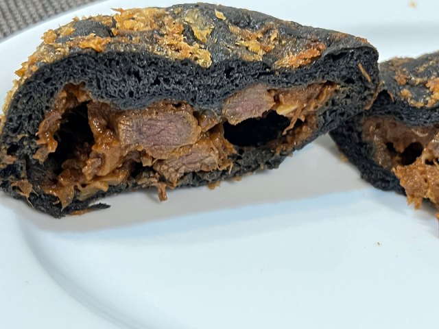 そのあたりは実際に食べてみないとなんとも言えないと思ったものの、先に中身をチェック。「黒ハッシュドビーフパン」を包丁で割ってみると……
