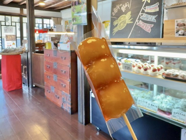 と思って歩いていたら、朝9時からオープンしている和菓子店「十輪寺茶や 越後岩船家」を見つけた。ボリュームたっぷりの「十輪寺串だんご」を頬張った。筆者は朝食に菓子パンやドーナツも全然いけるクチなので、イートインできて歓喜!