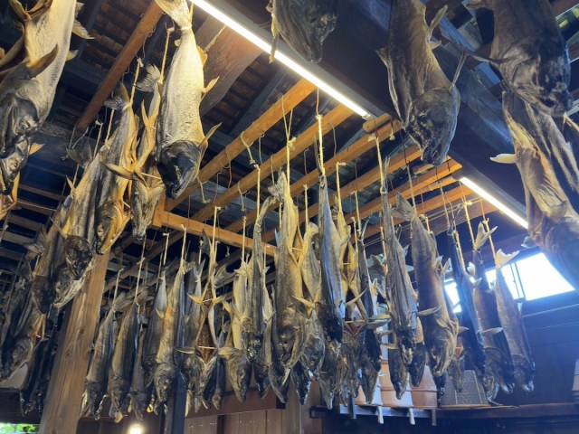 梁から無数の鮭が吊るされている。圧倒的な生命の気配と、塩の匂い。JR「大人の休日倶楽部」CMの吉永小百合さんを記憶する人もいるかもしれない。