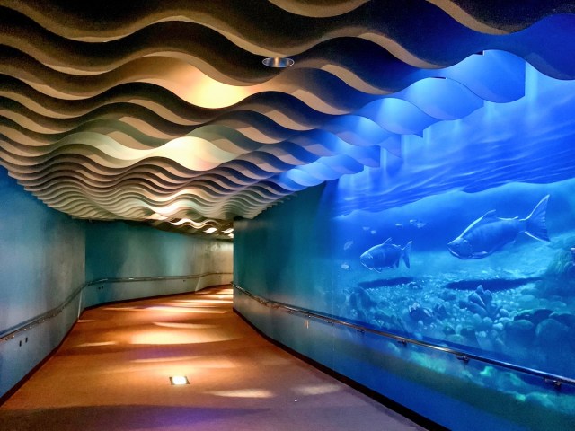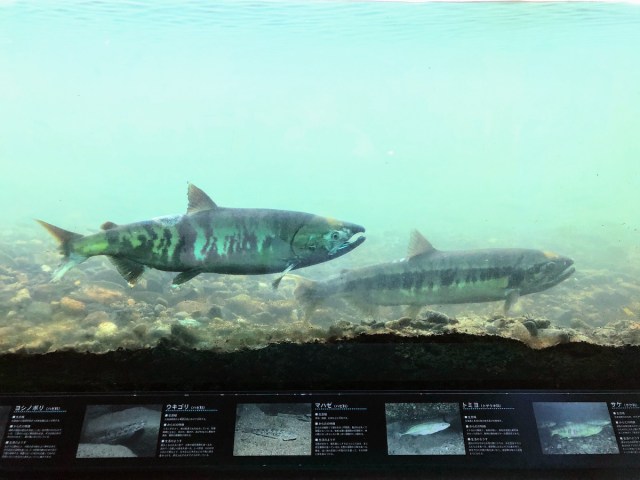 最大の見どころは、川の中をのぞける観察窓。鮭の遡上シーズンには圧巻の光景が見られるらしい。