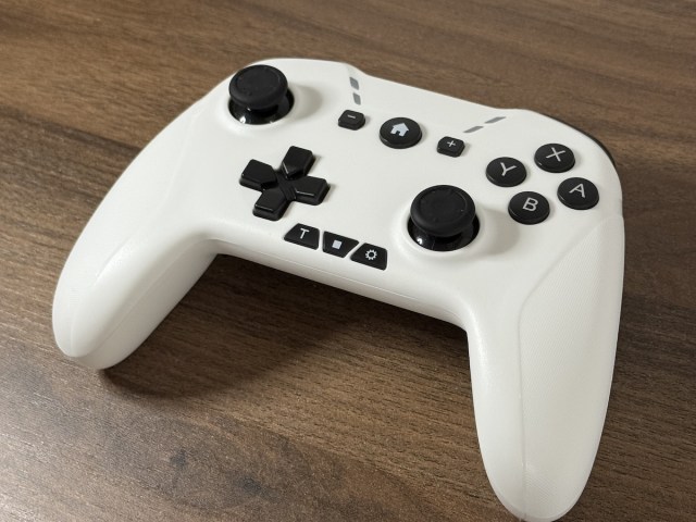 手に持った感じは、値段相応のリーズナブルなコントローラーという質感で、可もなく不可もない。握りやすさ、ボタンの押しやすさなど、どれもごく普通だ。もちろん人間工学まで考慮されたプロ用コントローラーとは比べるべくもないが、とりたてて欠点もないと思う。