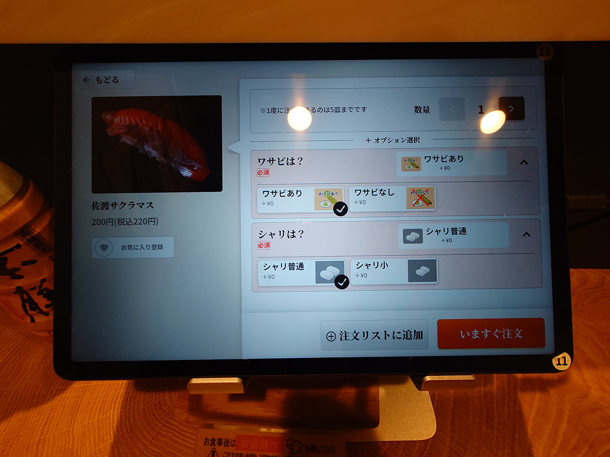 なるほど……ワサビの有無やシャリのサイズも選べるのか。