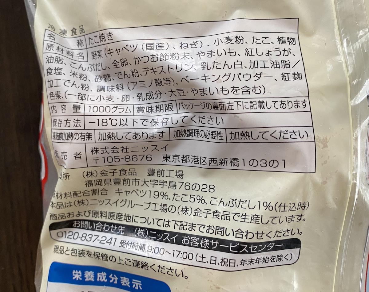 ▼商品の詳細。金子食品はニッスイグループとのこと