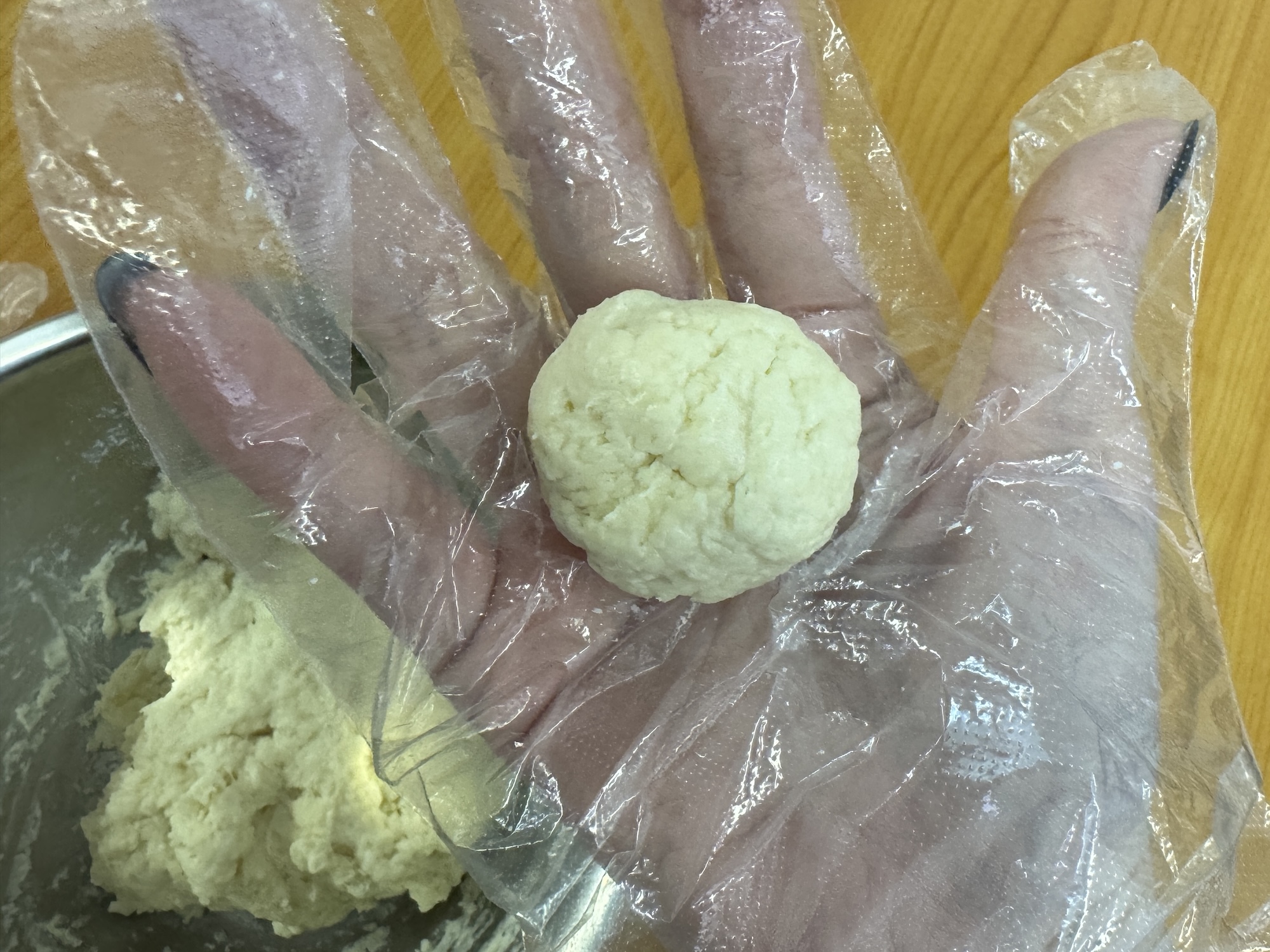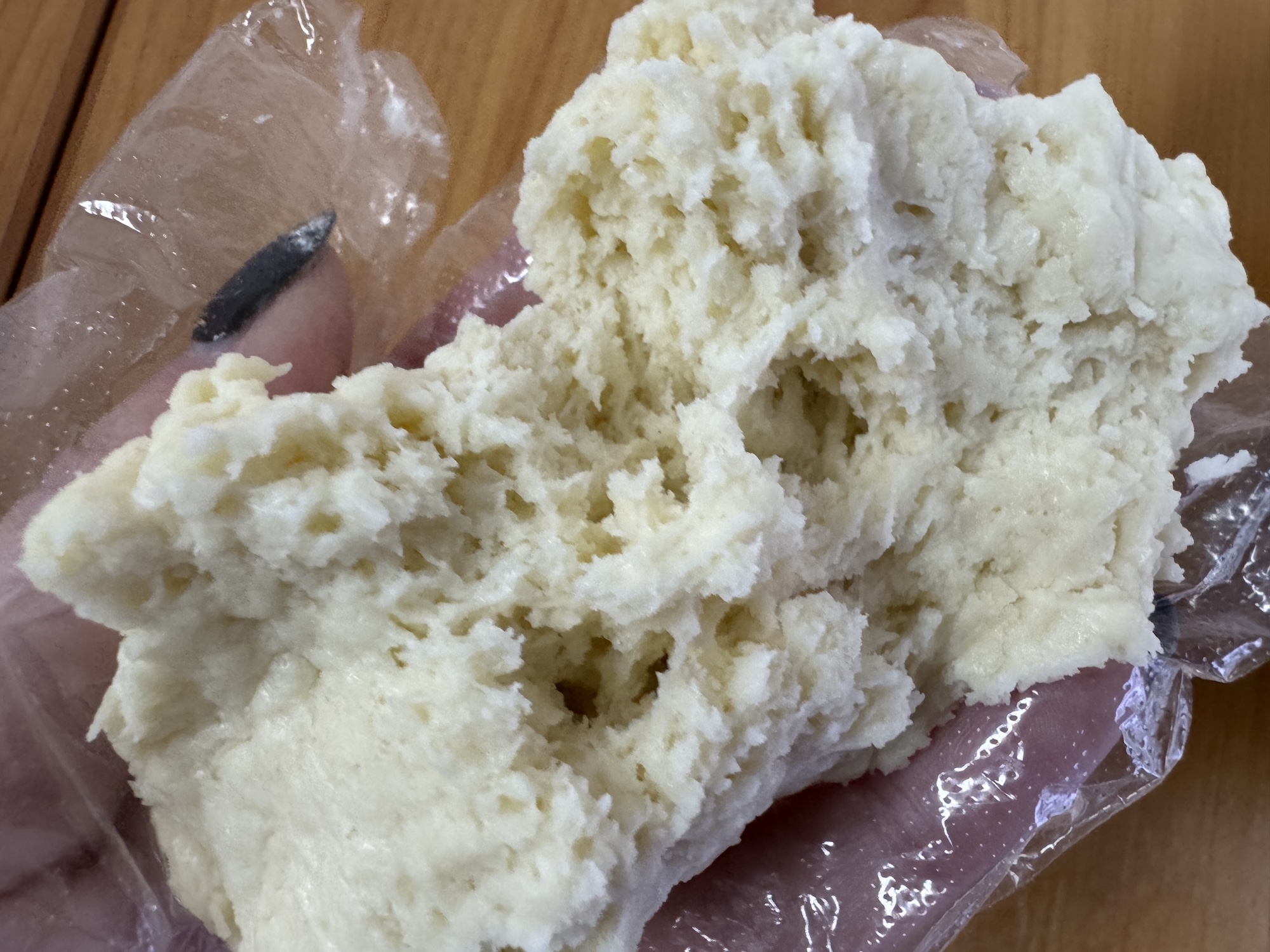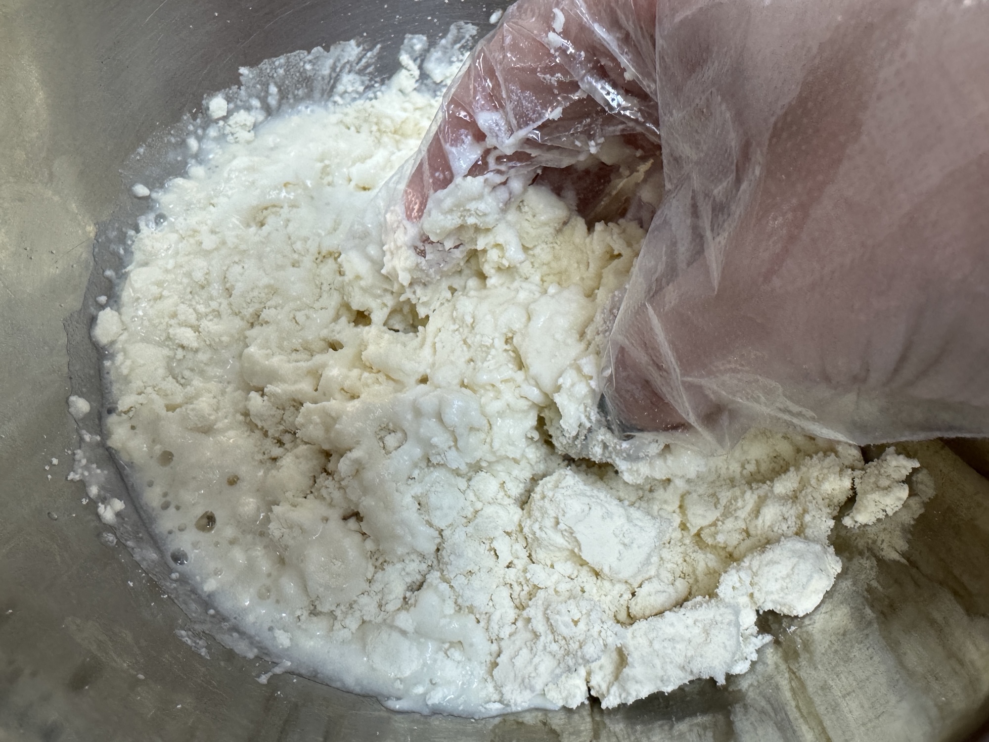 たった5分放置しただけにもかかわらず、生地がパンっぽくなってきた。トウモロコシみたいな、日本の炭水化物とは違ういい匂い〜!