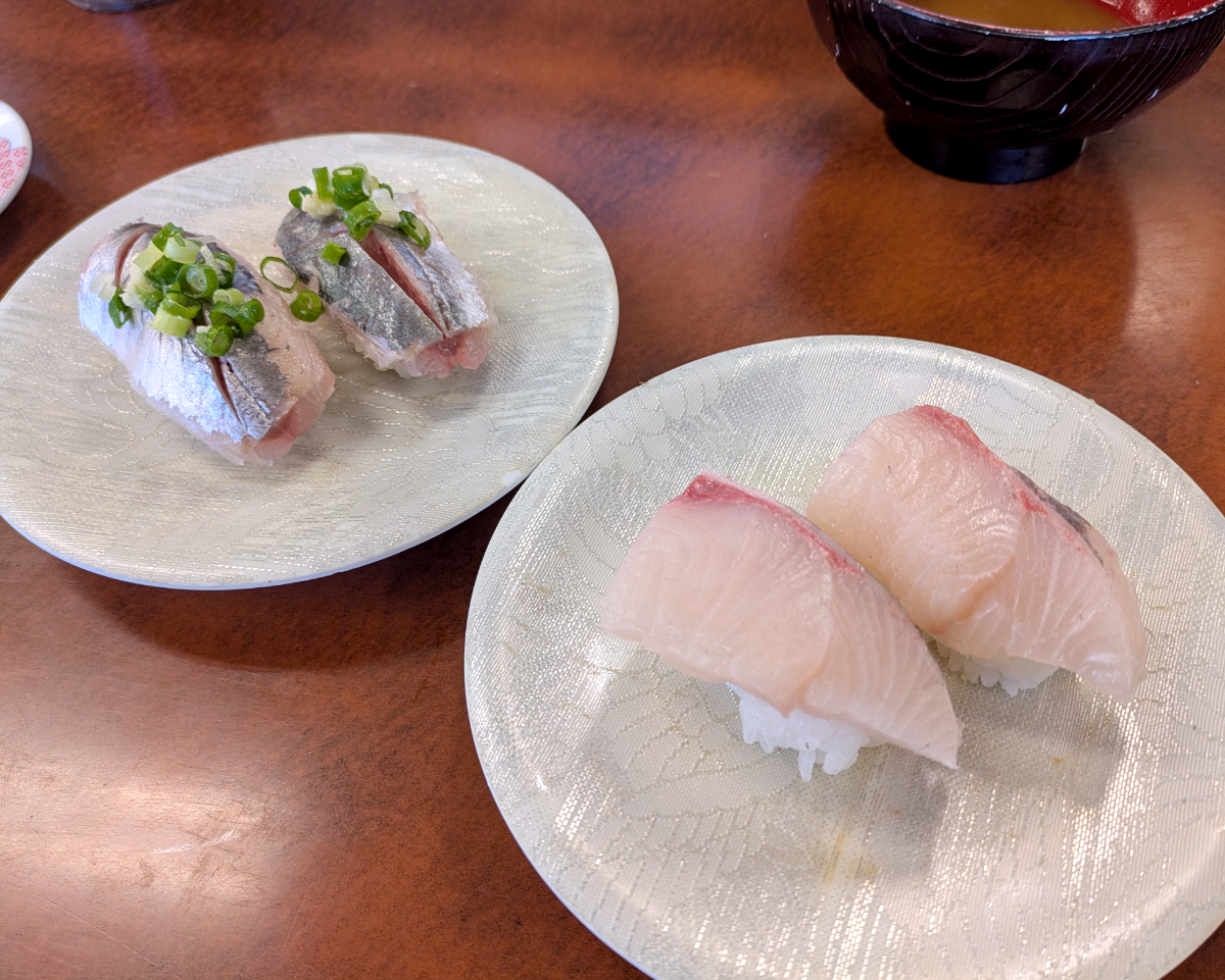 もう少しつまみたかったので、別途「かんぱち」と「生あじ」(各税別280円)を注文し、私の愉快なランチタイムは終了した。いうまでもなく大満足だ。