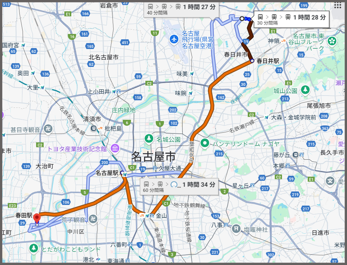 そこからが本記事の始まりである。時計を見ると午前11時。そんなにアチコチ行ってるのに、まだ昼になってね~。7時のチェックアウトが早すぎたのだ……。とにかくここから名古屋の中心街を挟んだ西側の中川区へと向かう。