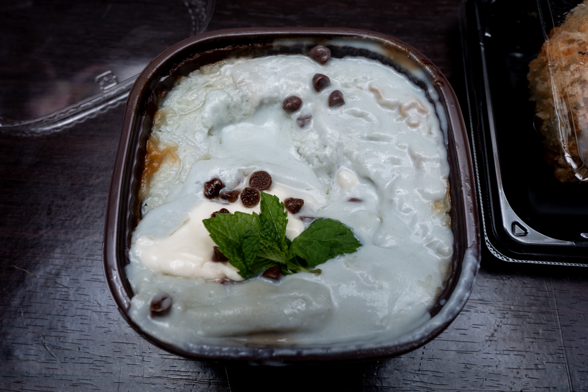 マジでチョコミントしてる……。ポテトニョッキはほんのり塩味。そこにクリームチーズと、チョコミントフレーバーのグラタン。んんん、何だろうこれは。チョコミントのグラタンとしか言いようがない。