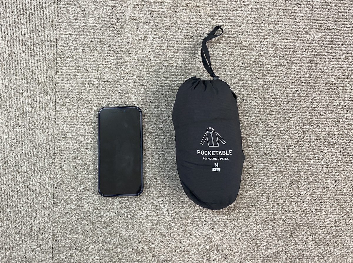 商品名にもあるポケッタブルであろう。袋つきで総重量200gと軽く、コンパクトに収納できて持ち運びも楽チン!