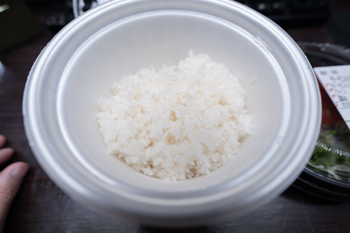 海苔も最初から一緒になっているタイプ。こちら、前回バッティングした対抗馬のすき家は小袋入りの海苔を採用しており、あちらに一歩リードを許した部分だった。