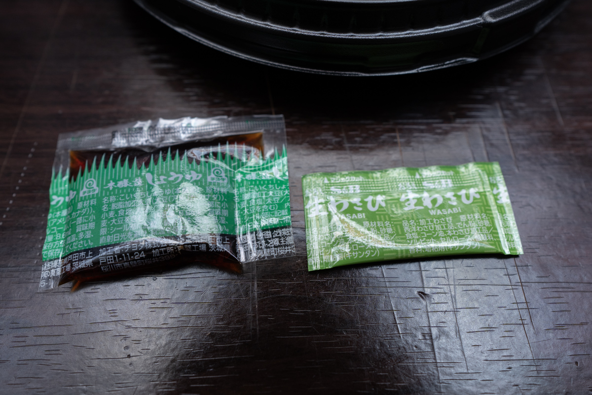 しかし、前回は全て一緒にされていたワサビが、今回はよくパック寿司に入ってるやつに! そういえば醤油も前回は渡されなかったな。もしかしたらデフォの味付けが変わっているのかもしれない。