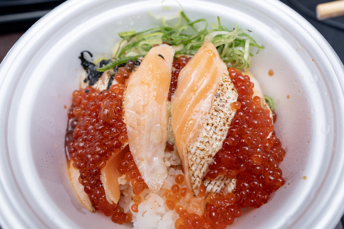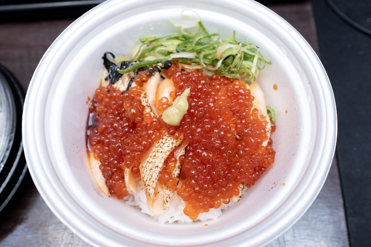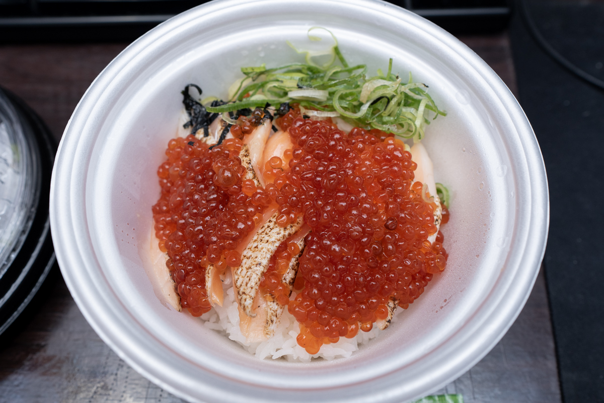 実は今回の店舗限定メニューだが、バリエーションが3種ある。「いくら丼」「炙りマヨサーモン丼」そして「サーモンいくら丼」だ。サーモンとイクラを仕入れたので、その組み合わせでできるやつを一気にやったみたいな気配。