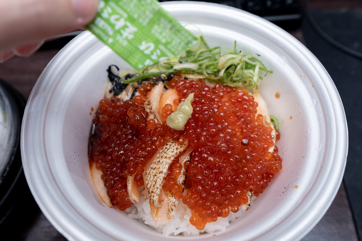 見ての通り私は付属の醤油を全てかけた。その状態で、イクラもサーモンも、そしてライスも全て食べきるまで、ずっと丁度いい塩加減だった。