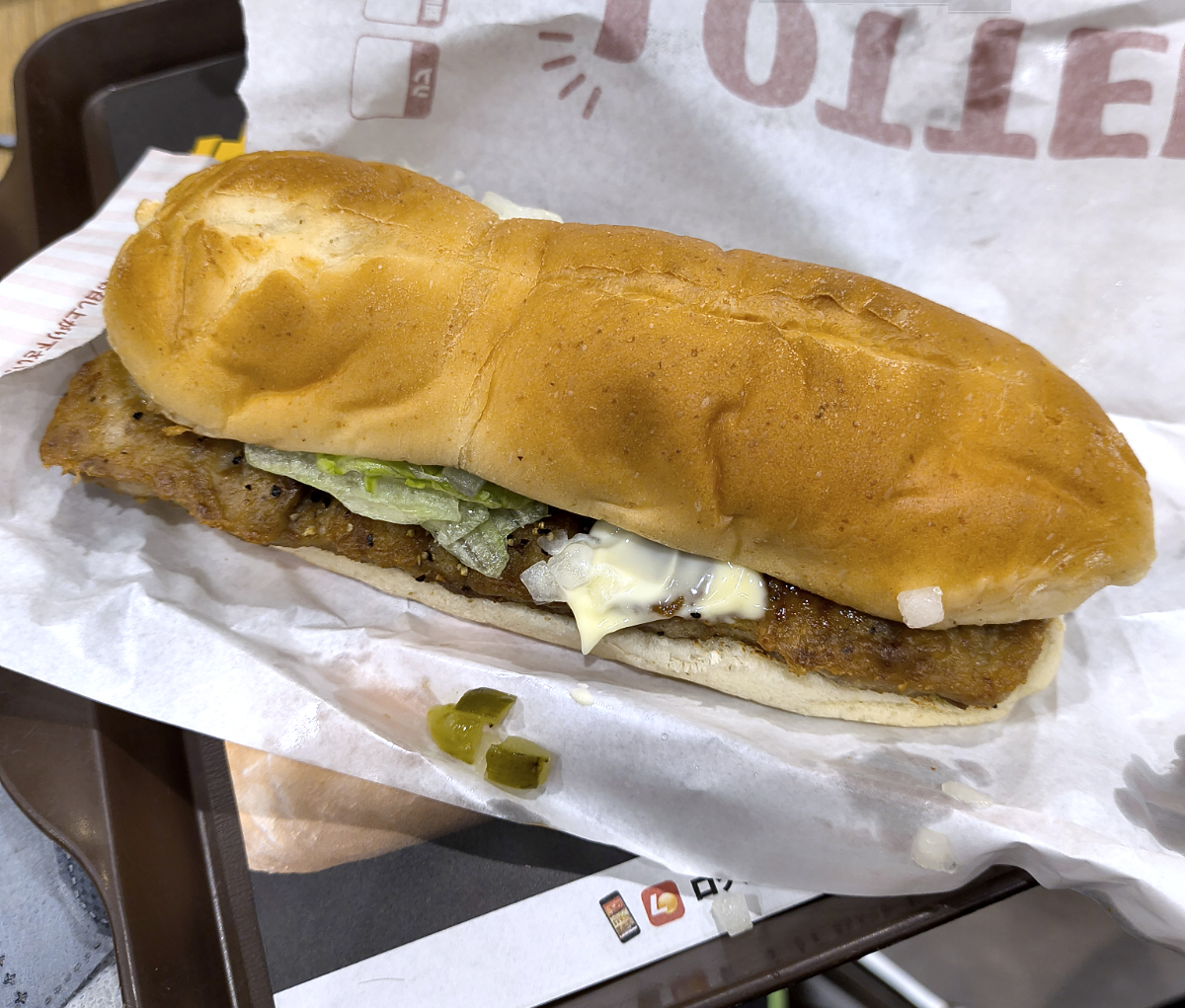 小さくなったか? いや、違う。私の脳裏にあるリブサンドポークはデカいだけだ。それは、私の過大評価によるもの。そして商品が小さくなったのではなく、私がデカくなったのである。リブサンドポークは小さくなってない。思い過ごしなんだ、うん。