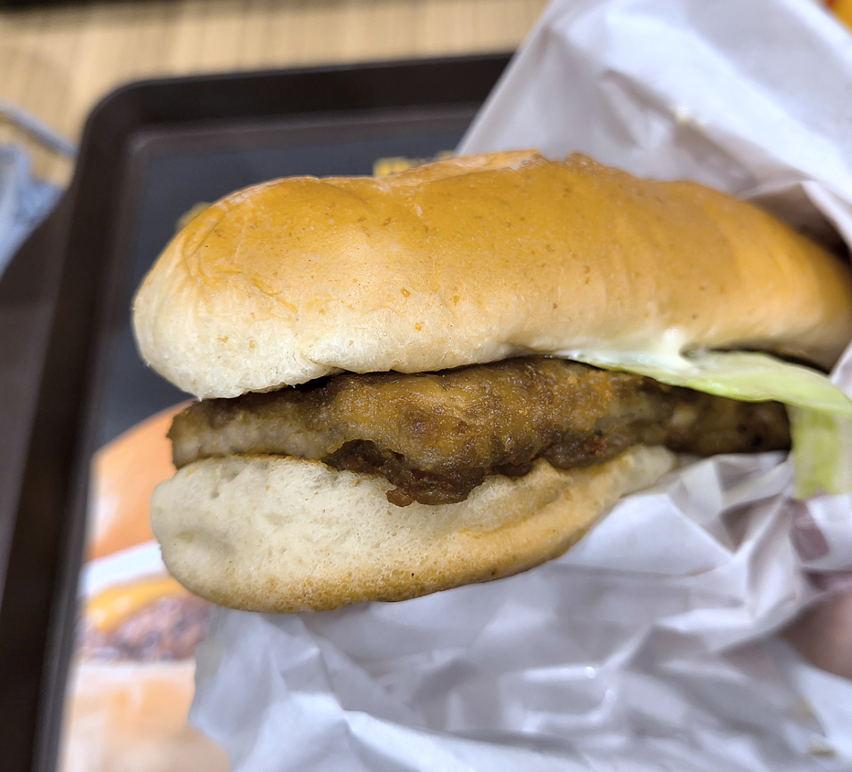 ひと口食えば、サイズなんか大した問題ではなかったことをすぐに思い出せる。味は変わらないんだよ。全粒粉入りのソフトフランスとシャキシャキレタスの食感。BBQソースとマヨネーズの甘辛い味に、ハニーマスタードソースの酸味のアクセント。たんぱくながら、しっかりと肉を感じさせるポークパティ。