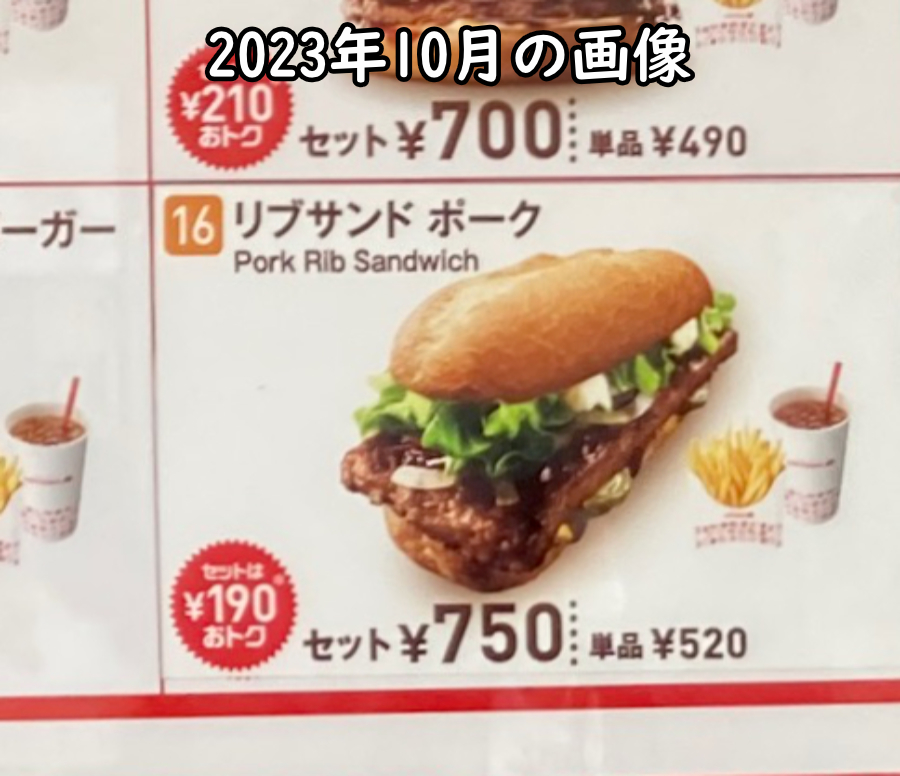 2年で単品価格は70円値上げ。セットは190円も高くなっている。でもいいんだ、リブサンドポークは高くなってもいい。食える限り頼むんだ。