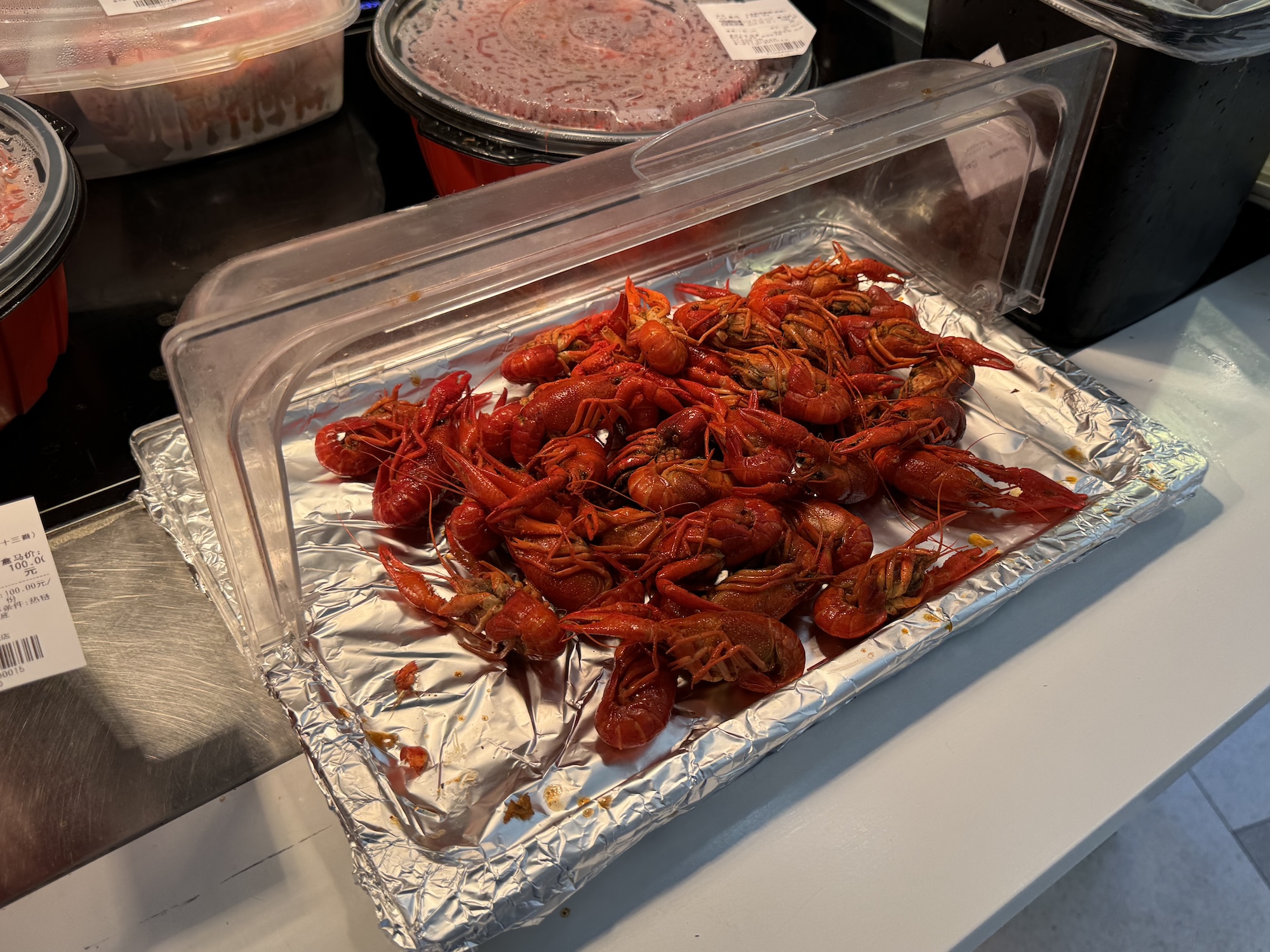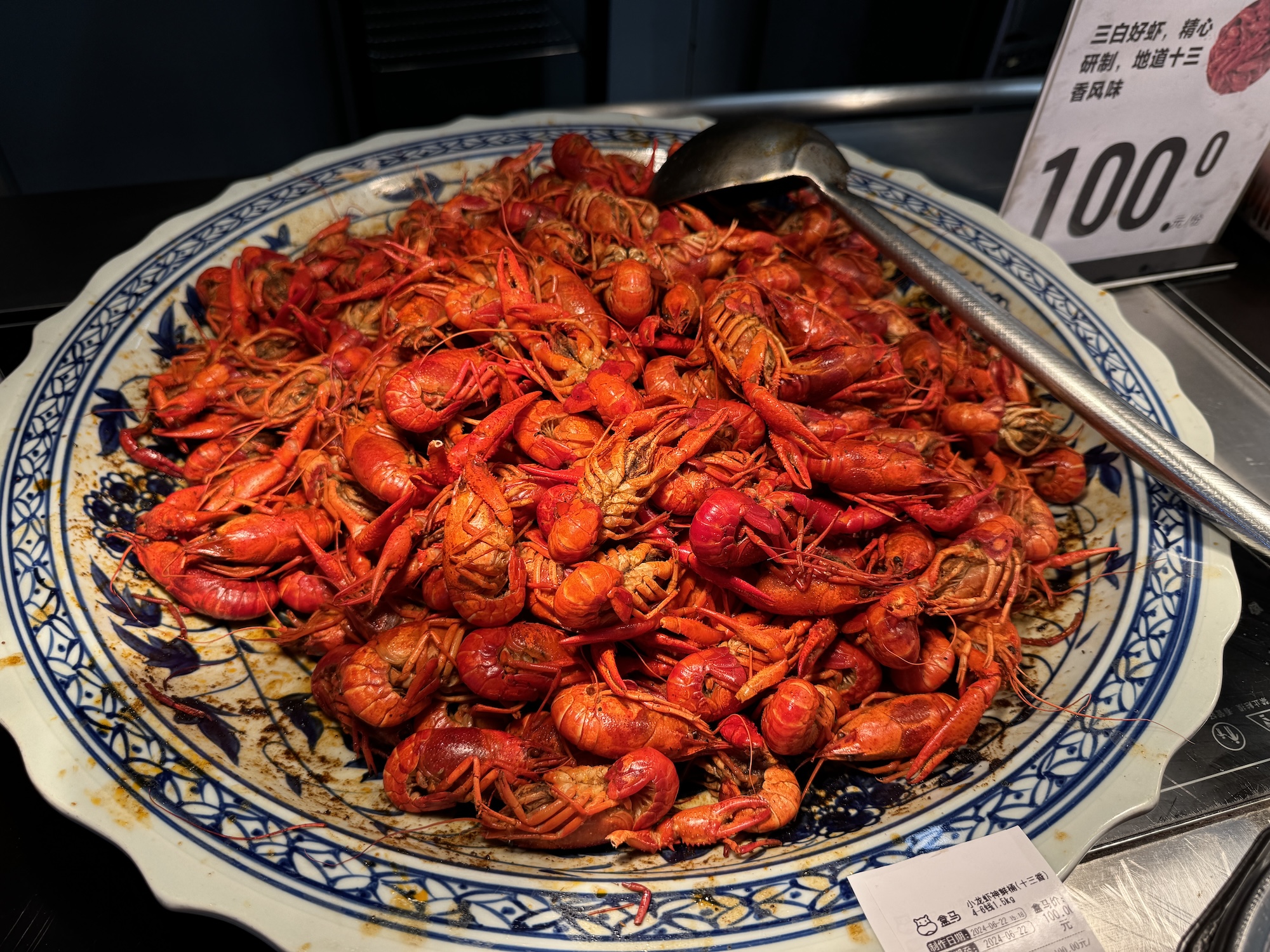 とか思いながらデパートを歩いていたら、なんと食品売り場でザリガニテイクアウトコーナーを見つけました!!! さすが中国、気合いが違う!!!!