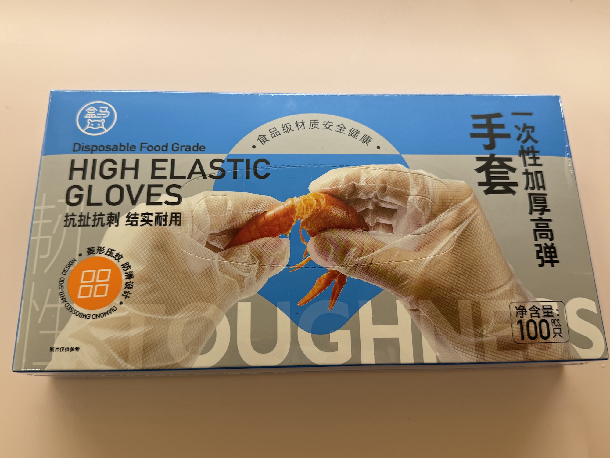 近くには使い捨てのビニール手袋も売られている。世界広しといえど、ビニール手袋のパッケージにザリガニが描かれているのは中国だけなのではなかろうか。