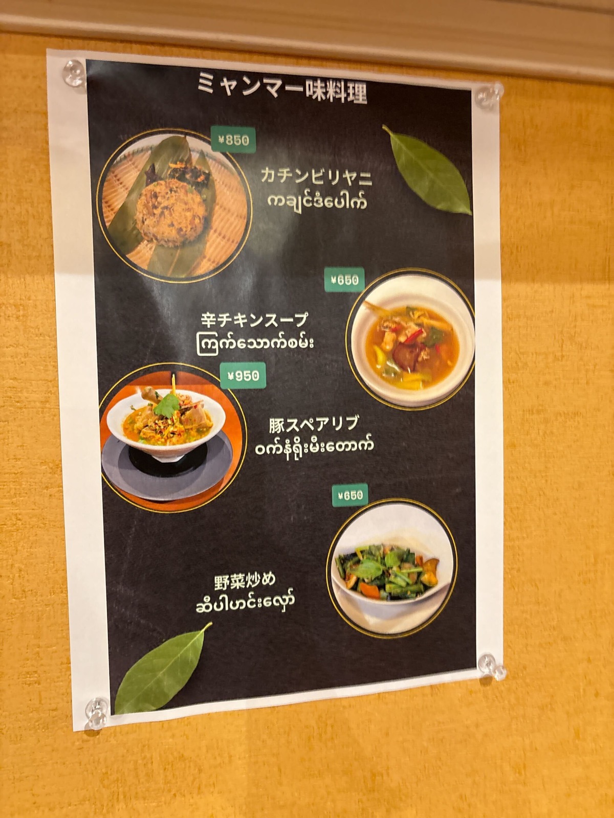 写真付きのミャンマー料理も食欲をそそってくる。
