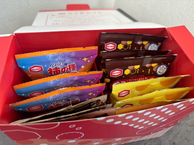 限定の味4種類が入った「カリッと!亀田の柿の種&超ハッピーターンのアソートボックス」(2160円)があるではないか!