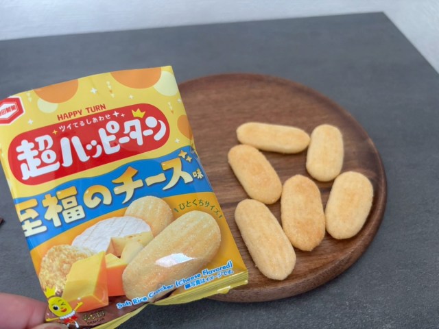 わずかにハッピーターンらしさを残しつつも、チーズ感がしっかり感じられておいしい。あっという間に1袋完食。