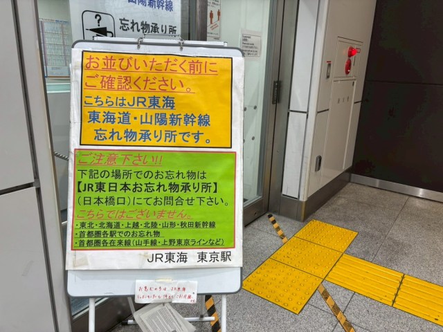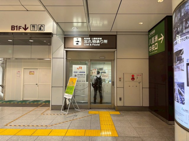 ・JR東海の忘れ物承り所は八重洲中央口の改札外