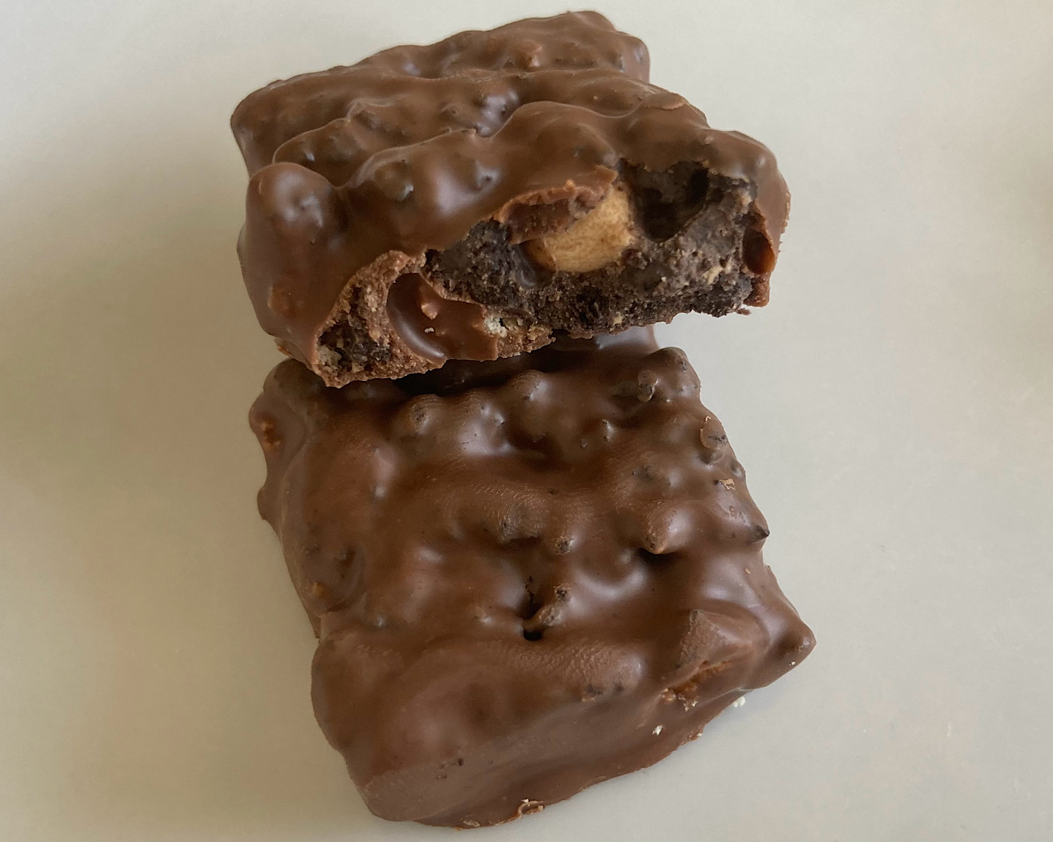 見た目も違う。並べてみると一目瞭然。表面のチョコの質感が滑らかで、色も明らかに濃い。高級チョコレートみたいだ。