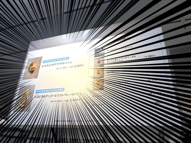 ケーキやパフェ、クレープなど趣向をこらしたメニューが勢揃いしているのだが、とんでもないパフェが紛れ込んでいた。 「タコスとポテサラのパフェ」である。しかもお値段3300円ときた。