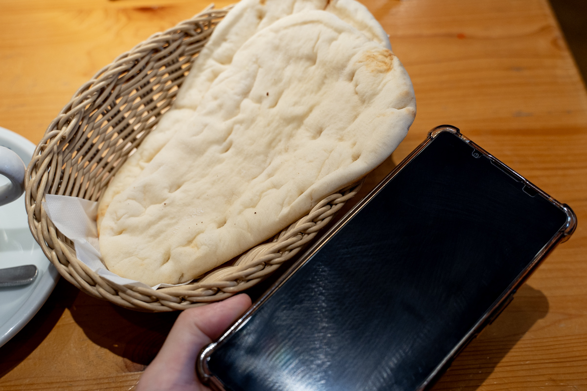 そして注目のナンだ! サイズ感は、大きめのスマホと同じくらい。それが1回のオーダーで2枚やってくる。ボリューム的にも十分なものだろう。