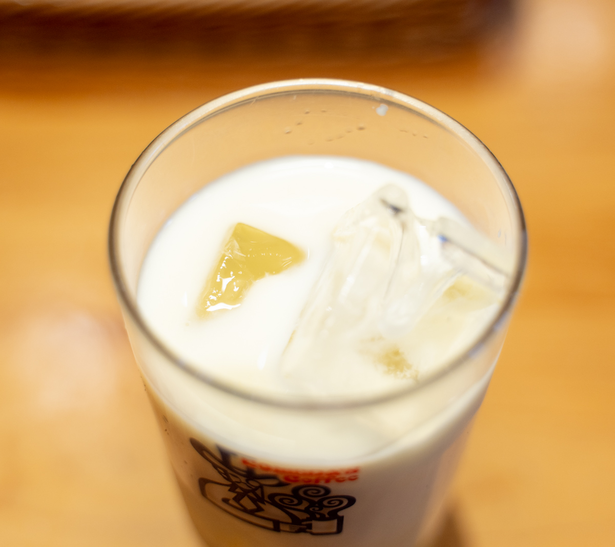 ほど良くマンゴーが入っていた。公式HPには “果肉の繊維質や果皮の一部が含まれていることがあります” とある。果肉の入り方はランダムなのかもしれない。甘さはコメダ基準。手加減なく甘いぞ!