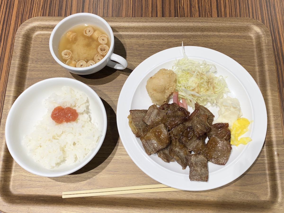 鉄板でジュウジュウ焼いているのを想像していた私。勝手にハードルを上げすぎていたからややズッコケたが、1万円で宿泊できて朝からステーキを食べまくれるのは幸せなことだ。