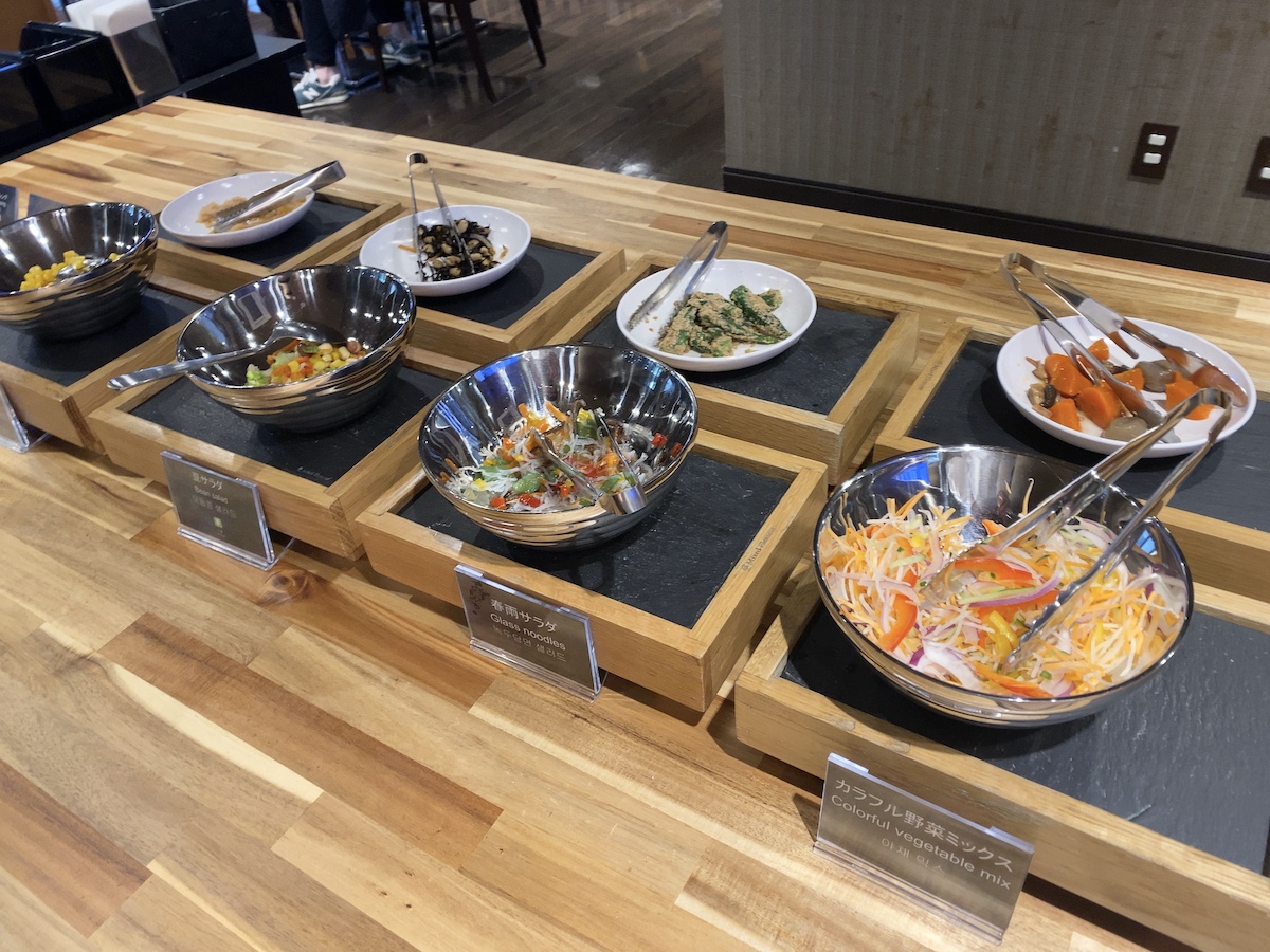 サラダに煮物、写しきれないくらい種類が豊富でとても一度じゃ食べられない量が置いてあるではないか!