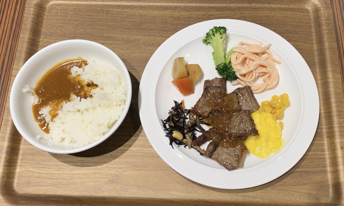 当然のように2周目の突入。ステーキのおかわり、それからビーフカレーまで食べて大満足……の予定が!