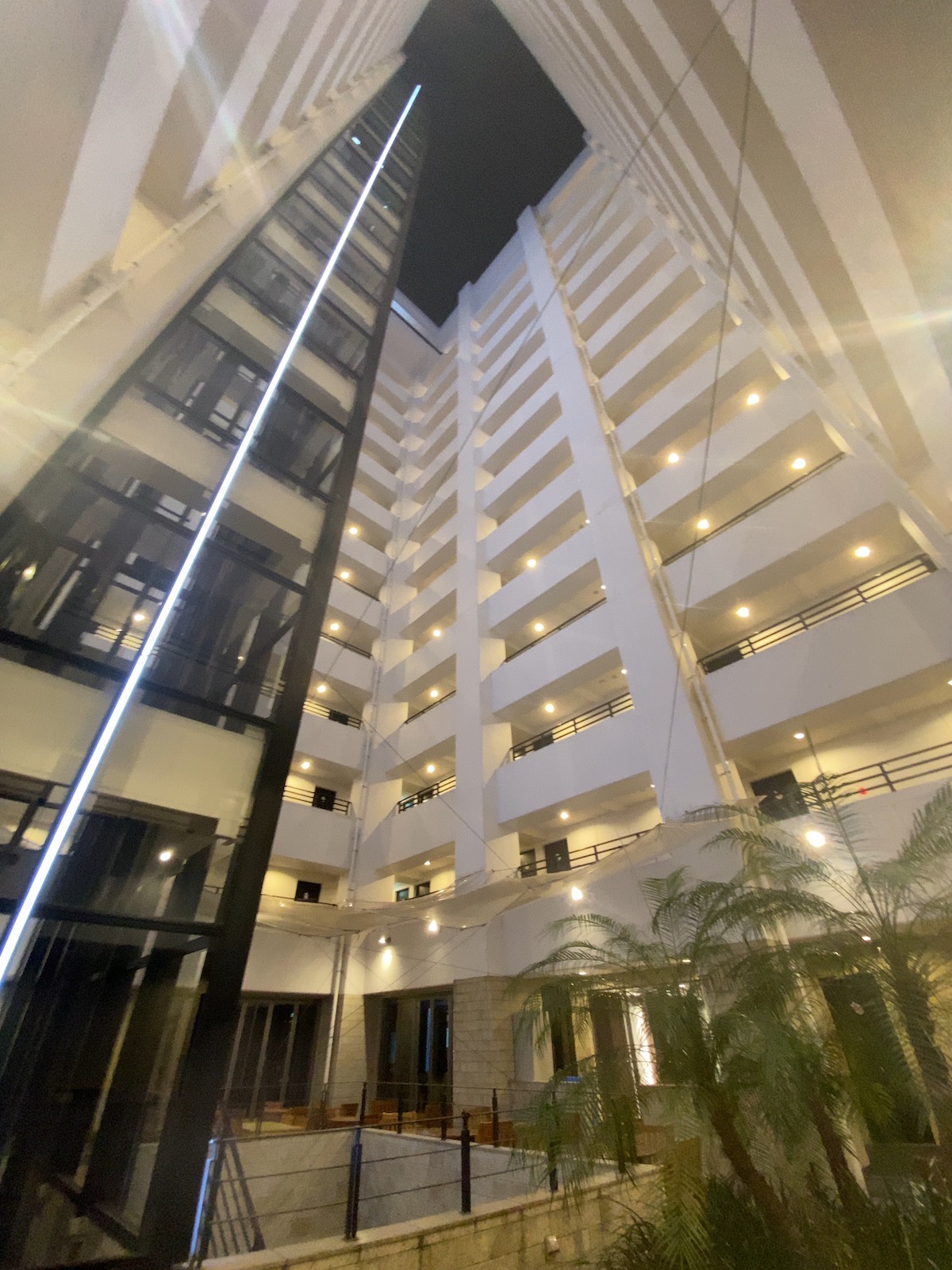 【写真】ホテルの真ん中は開放的な造りになっていた