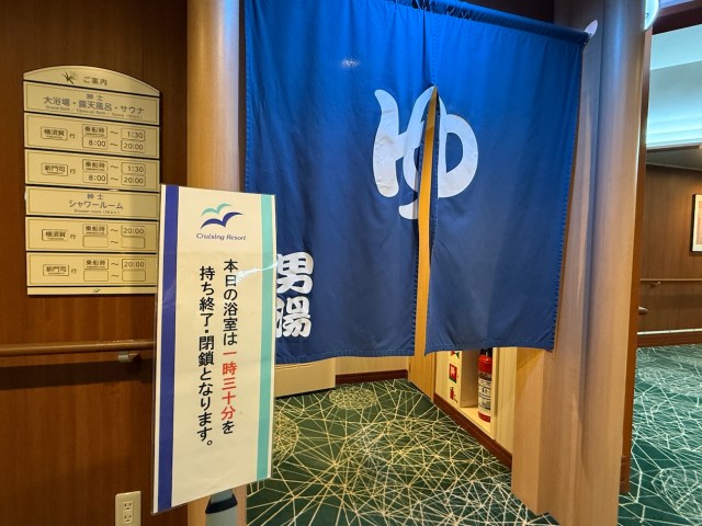 「明日はお天道様が出ないみたいですな。大荒れですわ。まあでも、この船は揺れを感じませんな。この間、苫小牧から仙台に行った時なんか湯船のお湯がひっくり返るくらい揺れましてな……でもやっぱりお風呂が1番ですわ」