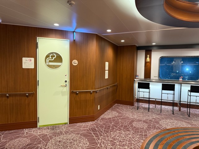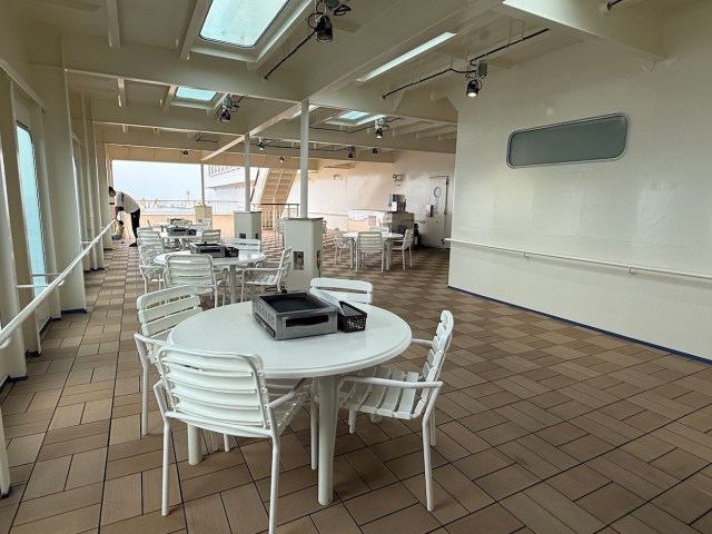 そういえば、レストラン横のオープンデッキではバーベキューが楽しめる(乗船後に完全予約・抽選制)そうだが、メイストームという最強悪天候ということで利用者はいなかった。