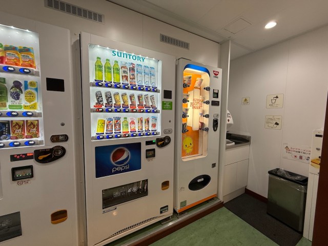 カップ麺やお酒などが売っている自販機コーナーもあって、