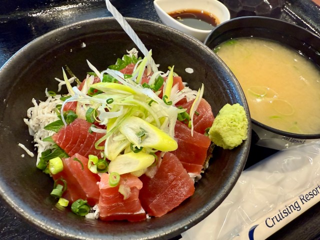 私はレストラン・大浴場・ベッドというローテーションをひたすらくり返した。レストランでは「朝カレー(1100円)」や三崎港名物の「三崎港まぐろ & 駿河湾産釜揚げシラス丼(1400円)」を食べたが……