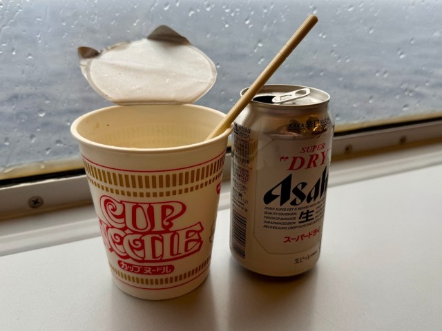 それ以上に自販機で買ったカップラーメンと缶ビールが美味しかった。レストランメニューも美味しいのだが、船上という特別な場所で食べるカップラーメンと缶ビールが最高過ぎたのだ。「山頂で食べると激ウマ」と同じパターンだろう。